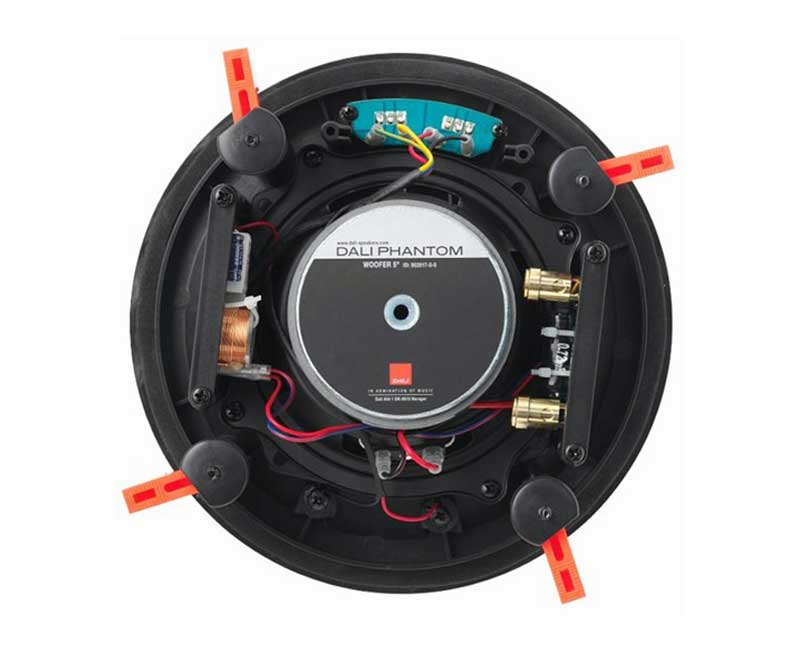 Встраиваемая акустическая система DALI Phantom E-50 имеет сравнительно небольшие габариты, что упрощает ее монтаж в помещении, и в тоже время способна развить существенное звуковое давление. Эти колонки являются настоящими универсалами - их можно использовать как в стереосистемах (например, в комплектах мультирум), так и в домашнем кинотеатре - например, для озвучивания тыловых или боковых каналов. Данные акустические системы рассчитаны на монтаж в потолке комнаты, однако с не меньшим успехом можно использовать и в качестве внутристеновых колонок, если позволяет толщина стен.