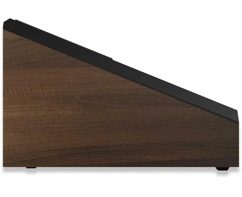 Варианты отделки включают виниловое покрытие под черное или ореховое дерево. Акустический экран имеет устойчивую к царапинам поверхность с матовым покрытием.