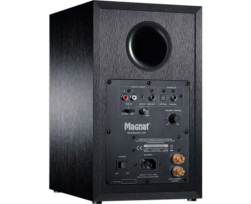 Акустика Magnat Multi Monitor 220 имеет высококачественный усилитель класса D со среднеквадратичной выходной мощностью 2 x 40 Вт. Данный модуль со всеми разъемами находится в правой части корпусов колонок. Это означает, что стереопара не нуждается в отдельном усилителе или ресивере — требуется только источник питания.