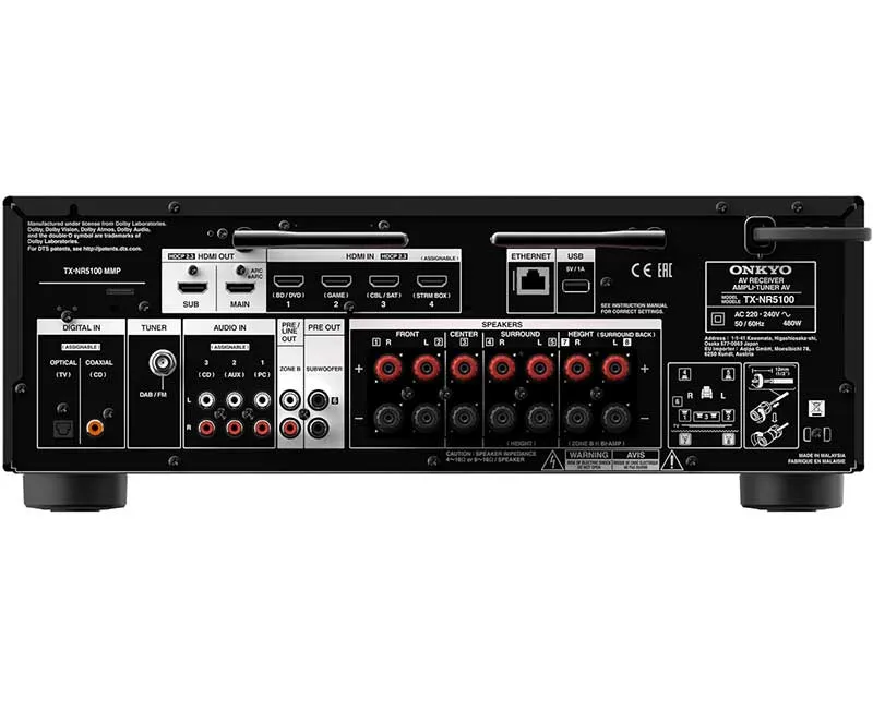 Onkyo TX-NR5100 M2 - 7.2-канальный сетевой AV-ресивер - звук будущего. Воспользуйтесь возможностью передачи видеосигнала с разрешением 8K/60p по HDMI 2.1 и оцените качество картинки в формате HDR10+ или Dolby Vision HDR с функцией (eARC) и поддержкой усиления кодированного многоканального аудиосигнала из приложений потокового видео для телевизора, сигнала тюнера или подключенных медиаплееров. Усовершенствования интерфейса HDMI устраняют задержку, чтобы обеспечить плавность игрового процесса. Благодаря раздельным усилителям, развивающим мощность до 150 Вт на канал, воспроизведение саундтреков в форматах Dolby Atmos и DTS:X отличается потрясающим динамизмом, а Dolby Atmos Height Virtualizer и DTS Virtual:X способны преобразовать в трехмерную сцену практически любой звук, воспроизводимый с любой конфигурацией колонок. Платформа интеллектуального AV-ресивера (SMART AV Receiver) предлагает широкий выбор потоковых сервисов и составит сердцевину вашей беспроводной многокомнатной экосистемы. Если у вас уже есть домашняя аудиосистема Sonos, этот ресивер будет идеально с ней сочетаться. Находите музыку и контролируйте ее распределение по всему дому с помощью голосовых помощников Hey Google или Alexa. Или слушайте музыку через ресивер, используя беспроводные наушники с двунаправленной беспроводной технологией Bluetooth.