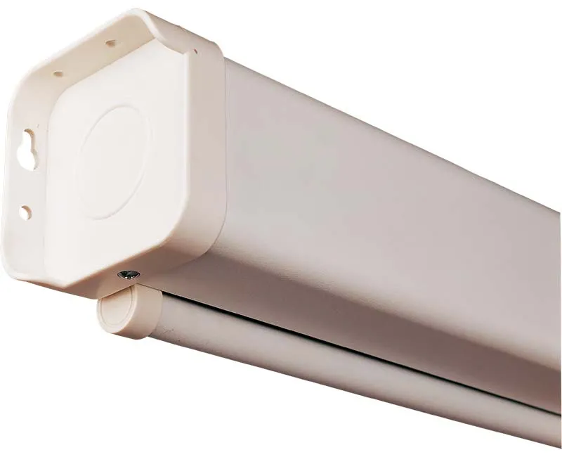 Lumien Master Picture — универсальный настенный экран с ручным управлением. Подпружиненный механизм обеспечивает плавное сворачивание и фиксацию полотна на любой высоте.
