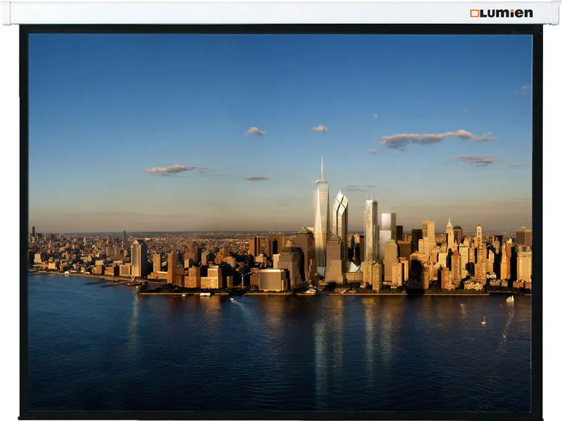Lumien Master Picture — универсальный настенный экран с ручным управлением. Подпружиненный механизм обеспечивает плавное сворачивание и фиксацию полотна на любой высоте.