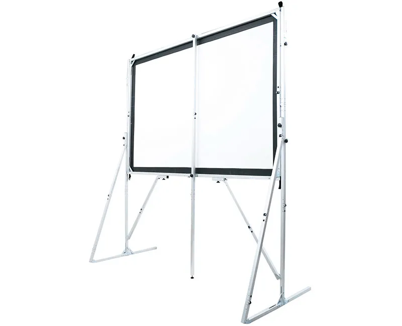 Мобильный экран на раме ViewScreen Fast Fold XL. Легкость сборки и мобильность конструкции обеспечивают удобство использования экрана. Экран включает в себя: Т-образные мобильные конструкции (ножки), тонкий кронштейн (сзади экрана), обеспечивающий устойчивость рамы, натяжное полотно на раме. Экран предназначен для использования на выставках, тренингах, бизнес встречах.