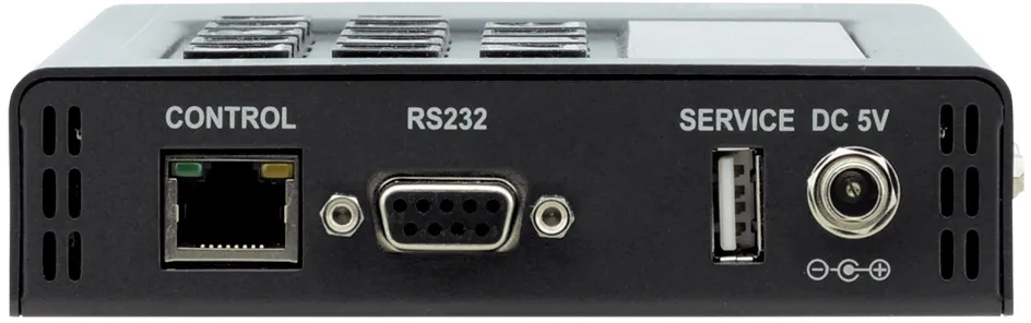 | Входы: | HDMI; стерео аудио, разъем 3,5 мм jack; RS-232, разъем 9-pin D-sub; Ethernet, разъем RJ45; USB | |