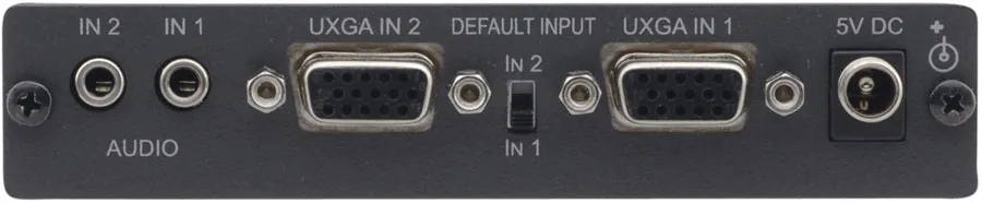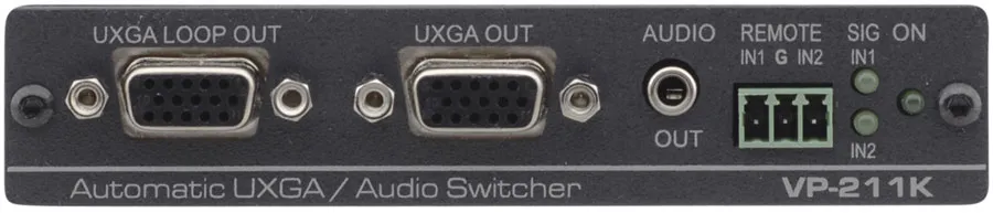 Kramer VP-211K — высококачественный коммутатор 2x1 для компьютерного графического сигнала UXGA/WUXGA и более высоких разрешений, а также небалансного стереофонического аудиосигнала. Прибор может использоваться для автоматического подключения резервного источника при потере видеосигнала на основном (наличие аудиосигнала не контролируется).