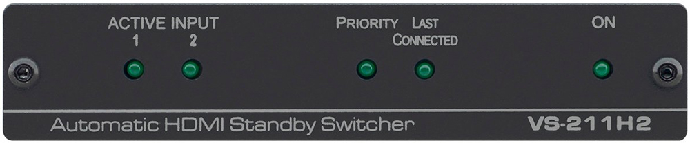 Kramer VS-211H2 - высококачественный коммутатор видеосигналов HDMI с функцией автоматического подключения резервного источника сигнала и поддержкой 4К. При отключении кабеля от входа с высоким приоритетом прибор автоматически переключается на вход с низким приоритетом.
