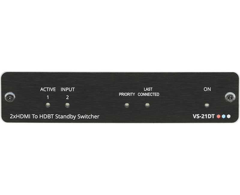 Kramer VS-21DT — высококачественный коммутатор сигналов HDMI cо встроенным передатчиком по кабелю на витой паре по технологии HDBaseT. Прибор переключает входы в автоматическом (по приоритетному или последнему активному входу) и удаленном (замыканием «сухих» контактов) режимах. Выбранный входной сигнал конвертируется в формат HDBaseT для передачи на дальние расстояния.