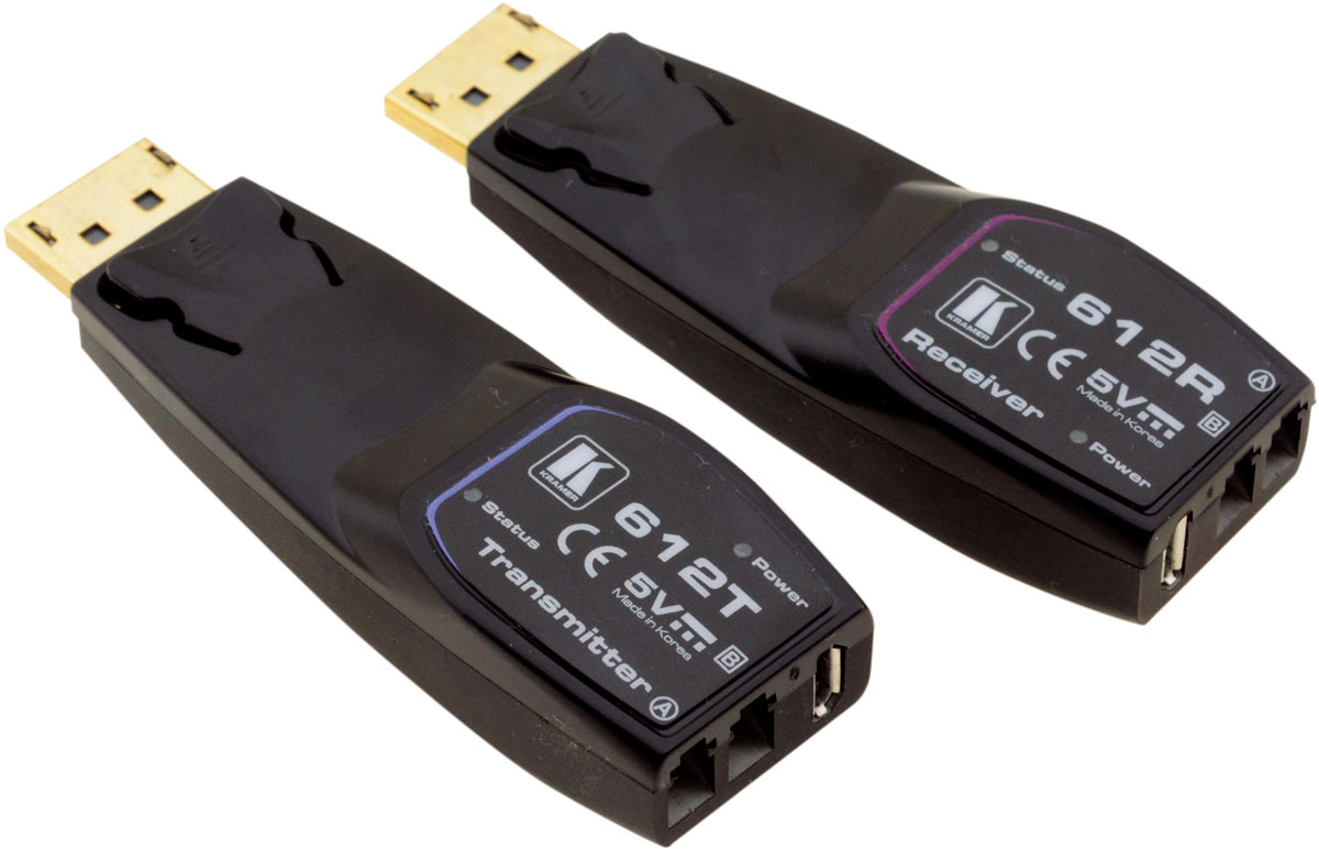 Kramer 612R/T – комплект из передатчика и приемника сигналов DisplayPort по волоконно-оптическому кабелю. Комплект транслирует видеосигнал в разрешении 4K@60 Гц (4:4:4) на расстояние до 200 м по двойному оптоволоконному кабелю.