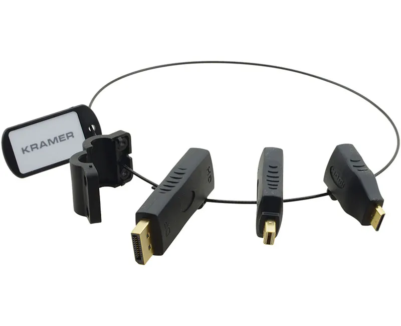 Kramer AD-RING — комплект переходников HDMI для подключения мультимедийного оборудования с различными выходными цифровыми разъемами. Комплект адаптеров обеспечивает унифицированное подключение ноутбуков, планшетов, смартфонов и т.п. c помощью стандартного кабеля HDMI. Переходники закреплены на стальном тросике в виде кольца для удобного использования и безопасного хранения. Кольцо укомплектовано пластиковым зажимом для фиксации на кабеле HDMI.