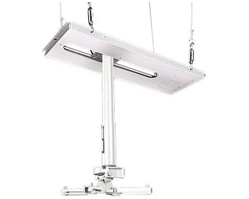 Полный комплект для монтажа проектора с подвесным потолочным адаптером. Идеально подходит для проекторов весом до 23 кг. Встроенные регулировки поворота, наклона и вращения делают выравнивание быстрым и простым. Механизм быстрого расцепления позволяет легко демонтировать проектор для обслуживания. Совместим со всеми штангами с резьбой 1,5” американского стандарта NPT.