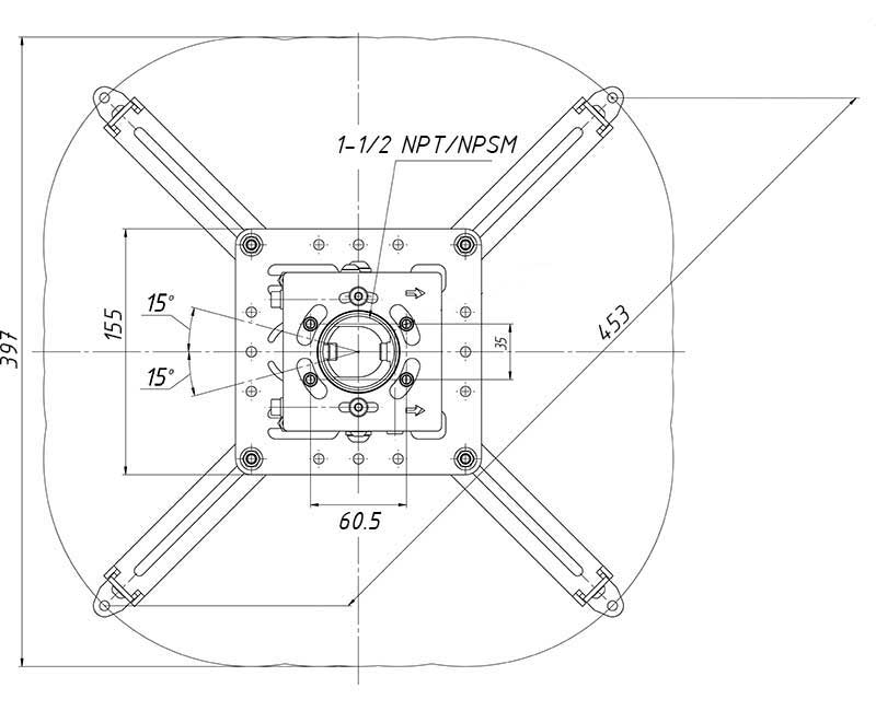 Ход регулировки штанги 2.54 см. Поставляется в предварительно собранном виде и с отсортированными крепежами, что значительно облегчает инсталляцию. Совместим со всеми штангами c размером резьбы 1,5” американского стандарта NPT. Прокладка кабеля внутри штанги обеспечивает всей инсталляции аккуратный внешний вид.