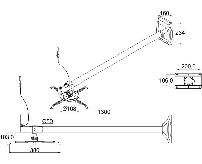 Универсальное настенное крепление Wize WTH130 для короткофокусных проекторов. Выдерживает нагрузку до 20 кг. Проектор может размещаться на любом расстоянии от стены в пределах длины штанги – максимальное расстояние 130 см. Наличие встроенного кабельного канала придает инсталляции аккуратный внешний вид. Страховочный трос, поставляемый в комплекте, обеспечивает дополнительную надежность и устойчивость.