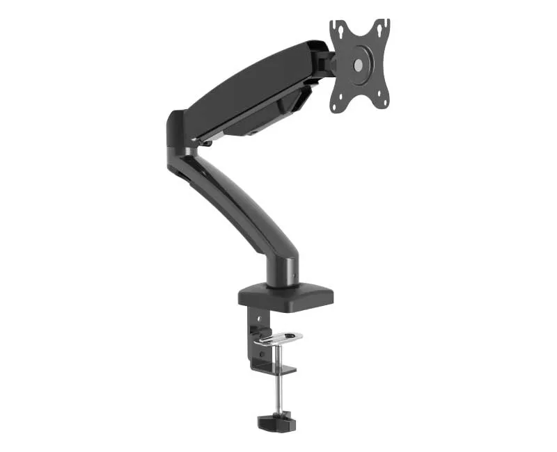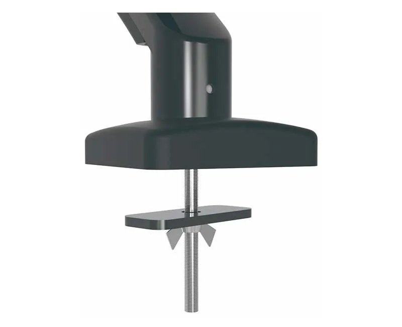 Настольное крепление WDA1-32 с системой газлифта предназначено для одного монитора с диагональю от 14 до 32 дюймов и выдерживает нагрузку до 7,3 кг. Оно совместимо с мониторами, имеющими стандарт VESA 75 x 75 и 100 x 100. Механизм с газовой пружиной обеспечивает плавное регулирование положения экрана. Благодаря пружинному элементу, система отличается долговечностью. Крепление WDA1-32 позволяет регулировать наклон монитора в диапазоне от -60° до +60°, поворот на -90° и +90°, а также вращение на 360°. Установка возможна двумя способами: с помощью струбцины или сквозным методом через отверстие в столе. Первый метод предполагает размещение крепления на краю столешницы без необходимости дополнительных отверстий. Для второго способа необходимо предварительно определить место для крепления и просверлить в столешнице соответствующее отверстие.