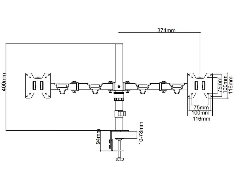 Настольное крепление Wize WDM2-32 разработано для двух мониторов с диагональю от 14 до 32 дюймов и выдерживает нагрузку до 10 килограммов на один модуль. Оно совместимо с мониторами VESA 75 x 75 и 100 x 100. Гибкость регулировки позволяет настроить крепление в соответствии с индивидуальными предпочтениями пользователя. Производитель предусмотрел возможность вращения на 360 градусов, наклона от -60° до +60° и поворота от -90° до +90°. Расстояние от основания составляет 374 миллиметра. Крепление можно установить двумя способами: с использованием струбцины или сквозным методом через отверстие в столе. Первый метод не требует дополнительных отверстий для монтажа, достаточно прикрепить крепление к краю столешницы. Во втором случае необходимо выбрать оптимальное место для монитора и крепления, а затем просверлить отверстие в столешнице. Встроенный кабель-канал обеспечивает аккуратный внешний вид и дополнительную защиту кабелей от повреждений.