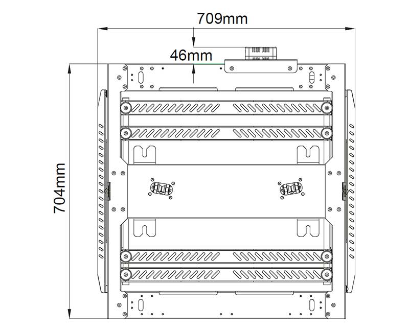 Внимание: Проектор не может быть установлен, если расстояние между фронтальными и тыльными монтажными отверстиями менее 190 мм. Максимально допустимые габариты для монтажных отверстий составляет – 470 мм (с фронтальной и тыльной стороны) x 500 мм.