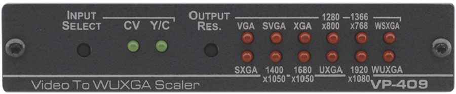 Kramer VP-409 - высококачественный преобразователь композитного видеосигнала и s-Video, повышающий разрешение вплоть до WUXGA. Прибор работает с сигналом систем PAL-B/D/G/H/I, NTSC 3.58 и NTSC 4.43. Высокое качество выходного сигнала обеспечивается трехмерным преобразователем чересстрочной развертки в построчную и трехмерным гребенчатым фильтром.
