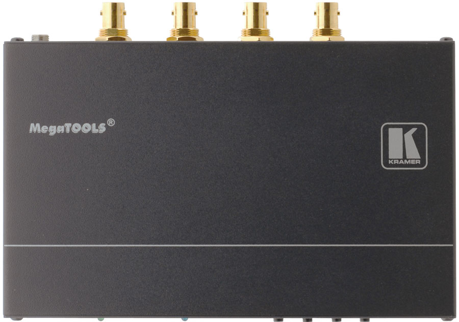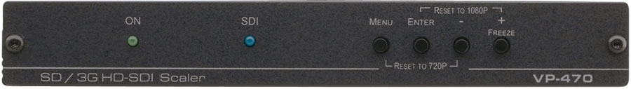 Kramer VP-470 - высококачественный цифровой масштабатор сигнала 3G HD-SDI. Прибор выполняет преобразование входного сигнала SDI с разрешением до 1080p, понижая или повышая разрешение, и выдает результирующий сигнал на два одинаковых выхода SDI.