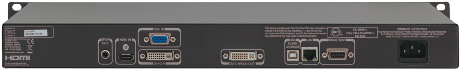 Kramer VP-793 - высококачественный масштабатор для HDMI, DVI и компьютерных графических сигналов, разработанный специально для отображения информации на больших дисплеях и на нескольких экранах. Прибор повышает или понижает разрешение входного сигнала, обрабатывает изображение по технологии HQV, вносит гибко управляемые предыскажения, выполняет коррекцию геометрии, совмещает края двух изображений. Выходной сигнал поступает на разъемы DVI/HDMI.