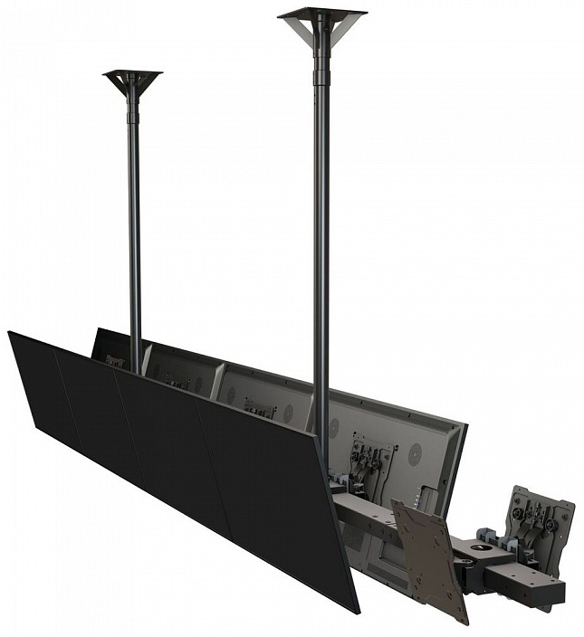 Модуль мультидисплейной системы Wize для потолочного крепления двух дисплеев «спина к спине» 60”-65”+ в портретной ориентации. Крепления могут быть объединены вдоль одной направляющей «спина к спине», образуя линейную систему. Быстрый и легкий подбор, универсальный дизайн, возможность регулировки по горизонтали, выравнивание и удобная прокладка проводов после инсталляции.