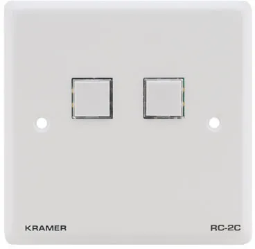 Kramer RC-2C - двухкнопочная панель управления, которая при нажатии кнопки посылает последовательность ИК или RS-232 команд. Она управляет устройствами с последовательным интерфейсом или устройствами управляемыми по ИК, такими, как проекторы, экраны и коммутаторы