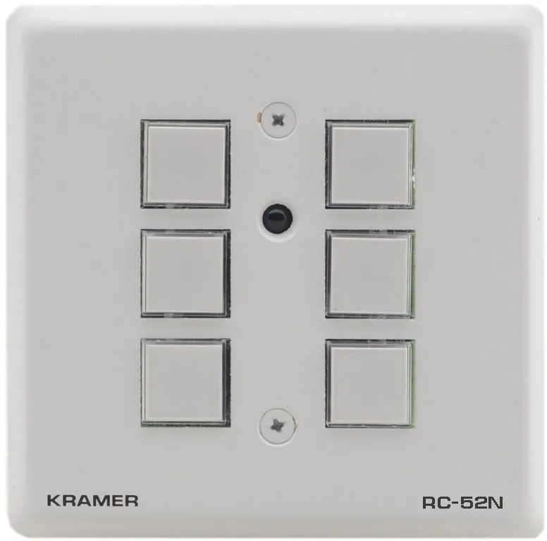Kramer RC-52N - шестикнопочное устройство управления презентационным залом. Прибор управляет системами презентационного зала: аудио- и видеоаппаратурой, освещением, экраном.