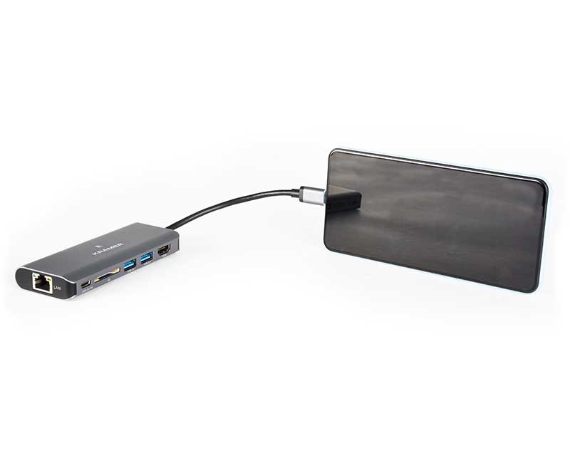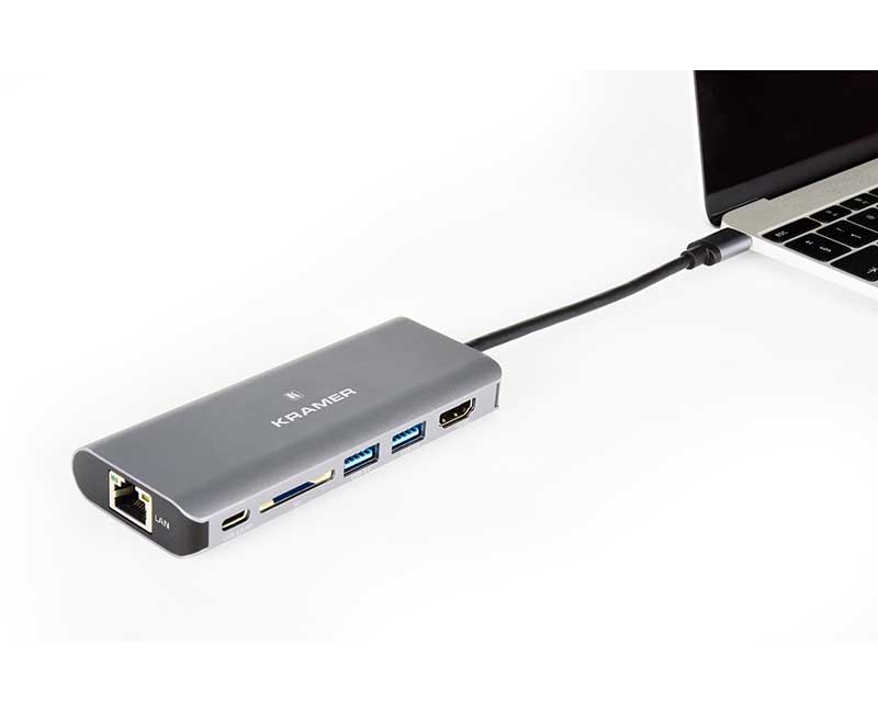 Kramer KDOCK-2 — активный многопортовый адаптер, предназначенный для работы с мобильными устройствами и являющийся идеальной дополнительной принадлежностью для ноутбуков семейства MacBook, прочих ноутбуков, оснащенных портом USB-C, смартфонов и планшетов. Устройство KDOCK-2 позволяет вам подключить устройство, оснащенное портом USB-C, к целому ряду устройств, включающему устройство HDMI, два устройства с портом USB 3.0 тип А, устройство с портом Ethernet, карту SD, а также мобильное устройство с портом USB-C с целью его зарядки.