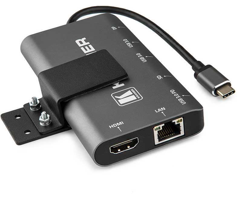 Kramer KDOCK-3 — активный многопортовый адаптер, предназначенный для работы с мобильными устройствами и являющийся идеальной дополнительной принадлежностью для ноутбуков семейства MacBook, прочих ноутбуков, оснащенных портом USB-C, смартфонов и планшетов. Устройство KDOCK-3 позволяет вам подключить устройство, оснащенное портом USB-C, к целому ряду устройств, включающему устройство HDMI, устройство DisplayPort, два устройства с портом USB 3.0 тип А, устройство с портом Ethernet, карту SD, а также мобильное устройство с портом USB-C с целью его зарядки.