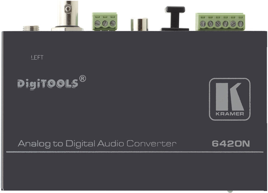 Kramer 6420N — высококачественный преобразователь аналогового балансного стереофонического аудиосигнала в цифровые форматы AES/EBU, AES-ID3, S/PDIF и Toslink (оптический). Все выходные сигналы выдаются одновременно/