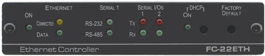 Kramer FC-22ETH - двунаправленный преобразователь сигналов интерфейса RS-232 (RS-485) и Ethernet. Он дает возможность управлять двумя устройствами с RS-232 (или одним с RS-485 и одним с RS-232) через локальную сеть Ethernet.