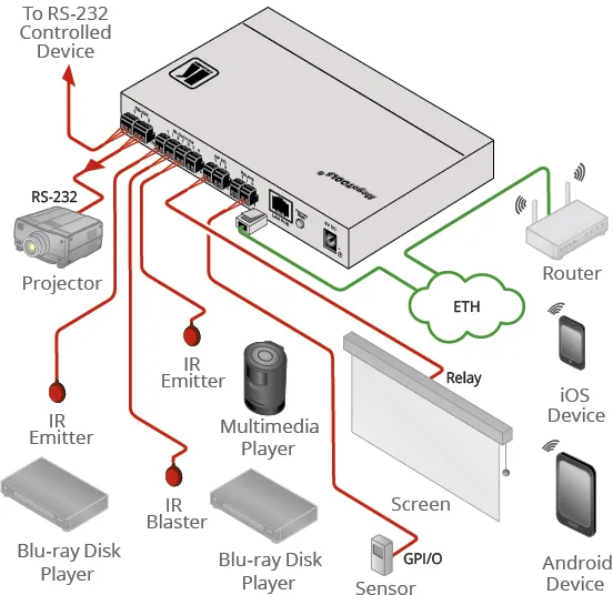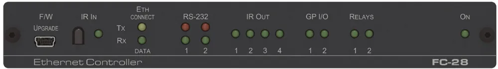 Kramer FC-28 — двунаправленный преобразователь сигналов интерфейса RS-232 и передатчик инфракрасного сигнала (ИК), подключаемый через Ethernet. Прибор позволяет управлять устройствами с интерфейсами RS-232 и ИК через локальную сеть.