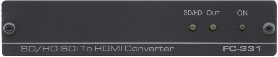 Kramer FC-331 - высококачественный преобразователь форматов цифровых видео сигналов до 3G HD-SDI. Он преобразует формат входного видеосигнала (со встроенным аудиосигналом) в выходной сигнал HDMI с разрешением и частотой кадров соответствующими входному сигналу (без масштабирования)