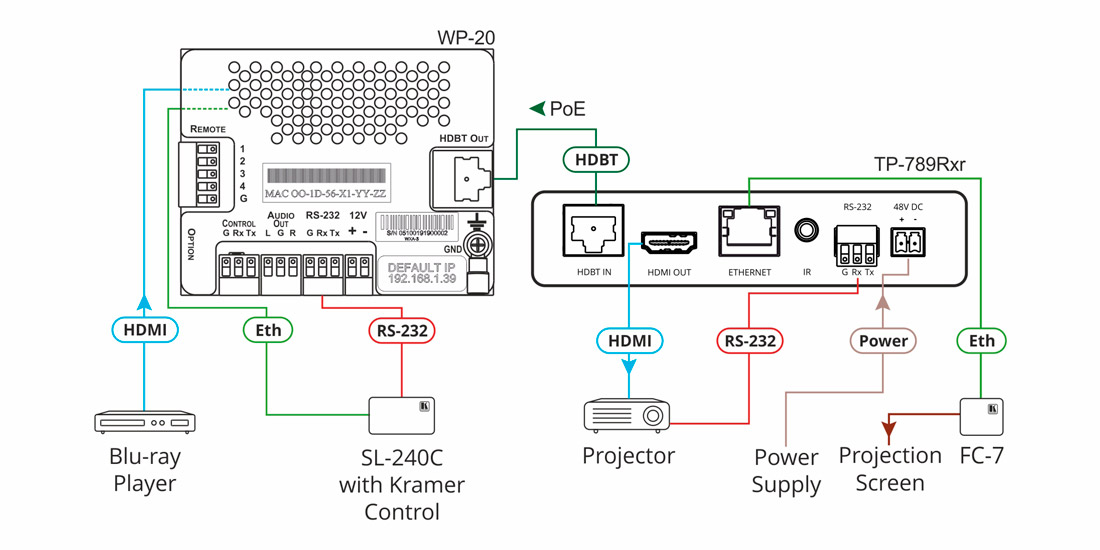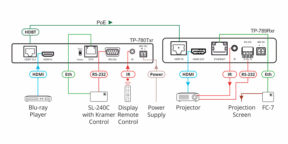 Kramer TP-789Rxr – приемник сигналов HDMI, Ethernet, RS-232 и ИК по кабелю витой пары HDBaseT c увеличенным расстоянием передачи, поддержкой разрешений до 4К@60 Гц (4:2:0) и функцией двустороннего питания PoE (Power over Ethernet/HDBaseT). TP-789Rxr обеспечивает прием видеосигнала с разрешением 4K@60 Гц (4:2:0), 24 бита на пиксель (8 бит на канал) на расстоянии до 100 м и видеосигнала с разрешением 1080p@60 Гц на расстоянии до 180 м при использовании рекомендованного медного кабеля витой пары производства Kramer Electronics. При использовании кабелей других производителей максимальные значения расстояния передачи могут снижаться.