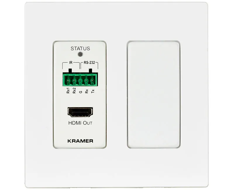 Kramer WP-789R – настенный приемник сигналов HDMI, RS-232 и ИК по кабелю витой пары HDBaseT c поддержкой разрешений до 4К@60 Гц (4:2:0) и соответствием стандартам HDMI 2.0 и HDCP 2.2. Прибор преобразует входной сигнал HDBaseT, передаваемый по кабелю витой пары, в сигнал HDMI. WP-789R обеспечивает прием видеосигнала с разрешением 4K@60 Гц (4:2:0), 24 бита на пиксель ( 8 бит на канал) на расстоянии до 40 м и видеосигнала с разрешением 1080p@60 Гц на расстоянии до 70 м при использовании рекомендованного медного кабеля витой пары производства Kramer Electronics. Прибор выполнен в формате настенной панели и может получать питание по кабелю витой пары HDBaseT по технологии PoE (Power over Ethernet).