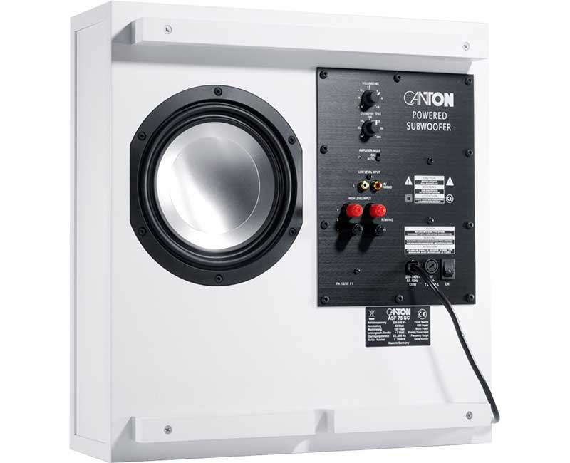 Компактный сабвуфер Canton ASF 75 для настенного крепления.выполнен в плоском корпусе фазоинверторного типа с нижним расположением динамика.