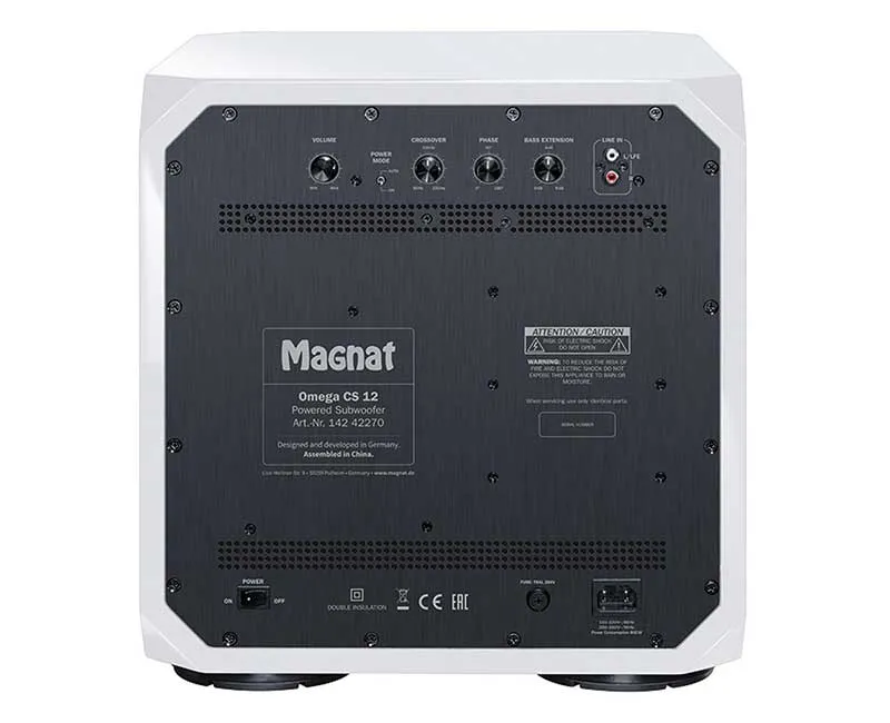 Сабвуфер Magnat Omega CS 12 выполнен в закрытом демпфированном корпусе и оснащен виброизолирующими опорами. В модели Magnat Omega CS 12 установлен усилитель класса D с выходной мощностью до 1100 Вт. Это гарантирует точную передачу самых динамичных басовых спецэффектов Активный сабвуфер Magnat Omega CS 12 выполнен в привлекательном дизайне с шикарной внешней отделкой. Несмотря на свои размеры, Magnat Omega CS 12 не выглядит громоздким. Корпус саба имеет срезанные углы, придающие ему сходство с большим игральным кубиком. Magnat Omega CS 12 вполне может стать стильным дополнением современного интерьера.