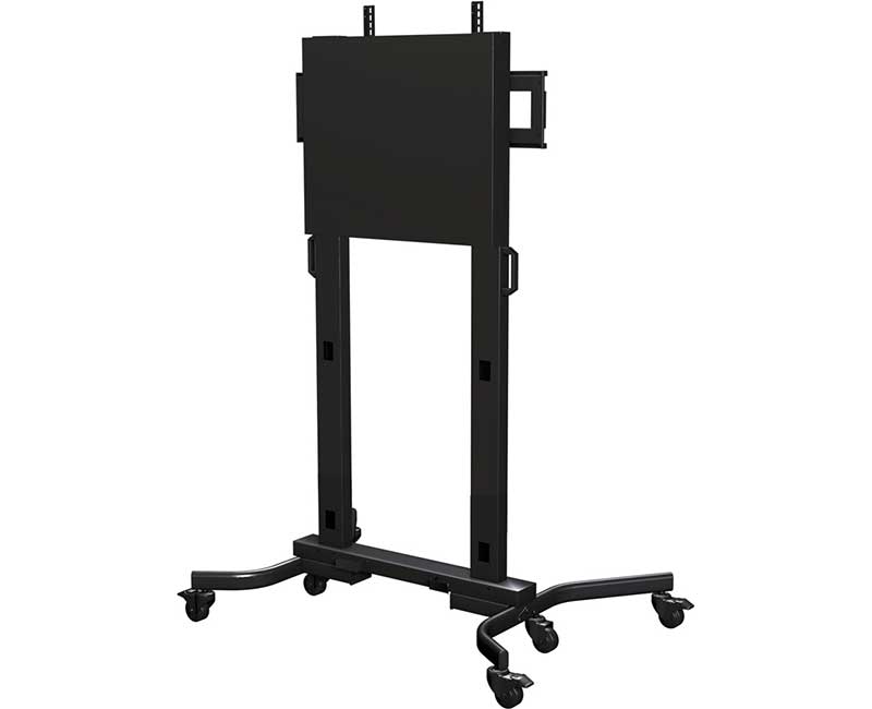 Прочные каучуковые колеса обеспечивают легкое перемещение по любой поверхности. Вертикальная регулировка, наклон на +15/-5° обеспечивает оптимальную высоту просмотра и угол обзора.