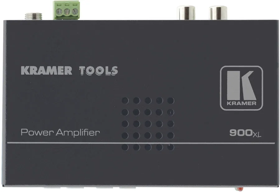 Kramer 900xl — высококачественный усилитель мощности для стереофонического аудиосигнала с линейным уровнем. Входной небалансный стереосигнал подается либо на два разъема RCA, либо на 3,5-мм аудиорозетку. Выходная среднеквадратичная мощность 10 Вт на канал (нагрузка 4 Ом).