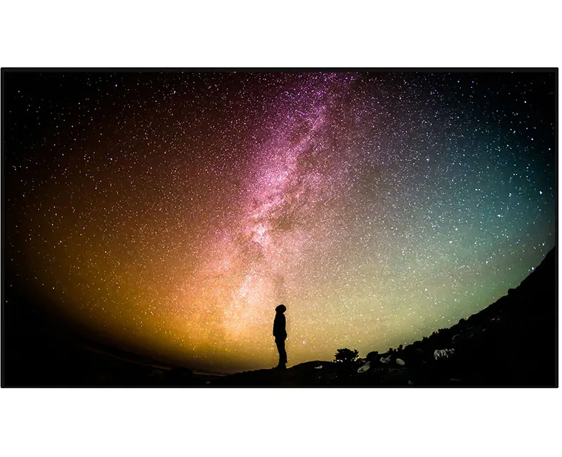 Технология DLED с прямой подсветкой экрана гарантирует яркость до 500 кд/м², а контрастность 4000:1 позволяет создавать насыщенные и выразительные изображения в любых условиях.