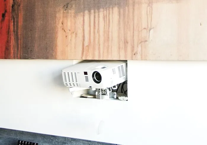 Герои проекта давно мечтали о проекторе, и он у них появился. Проектор установили в специальной нише над диваном, а рулонный настенный экран размещен под потолком. Выбранная модель проектора поддерживает подключение по HDMI, позволяющее передавать цифровые видеоданные высокого разрешения. Теперь герои программы могут использовать экран проектора для того, чтобы смотреть кинофильмы в кругу своей семьи, играть с друзьями в видеоигры, и просматривать ролики из Интернета.