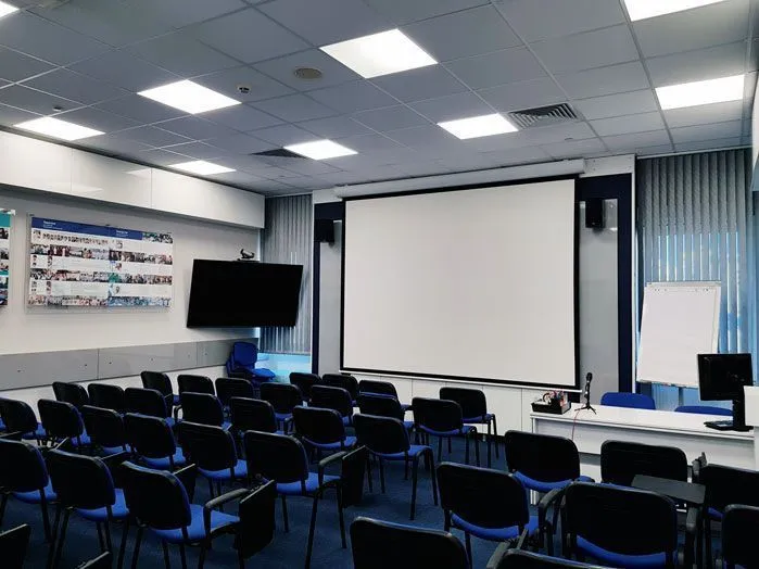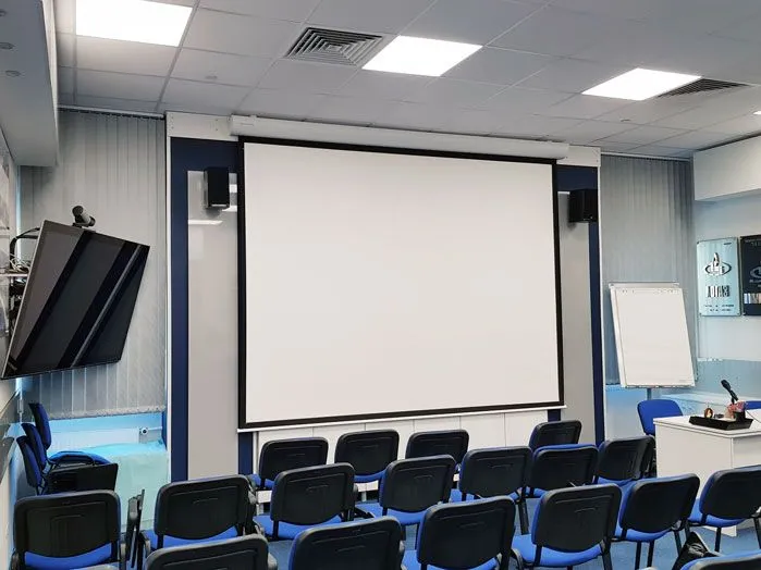 Заменить старый проекционный экран на современный моторизованный экран высокого качества.